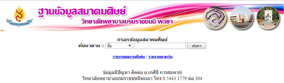 1.คลิ๊ก ฐานข้อมูลสมาคมศิษย์วพบ.พะเยา