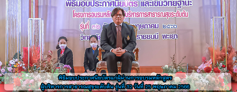 พิธีมอบประกาศนียบัตรแก่ผู้ผ่านการอบรมหลักสูตรผู้บริหารการสาธารณสุขระดับต้น รุ่นที่ 32