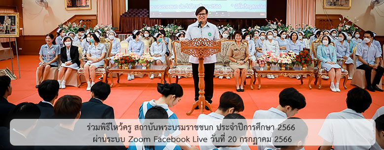 ร่วมพิธีไหว้ครู สถาบันพระบรมราชชนก ประจำปีการศึกษา 2566 ผ่านระบบ Zoom Facebook Live วันที่ 20 กรกฏาคม 2566