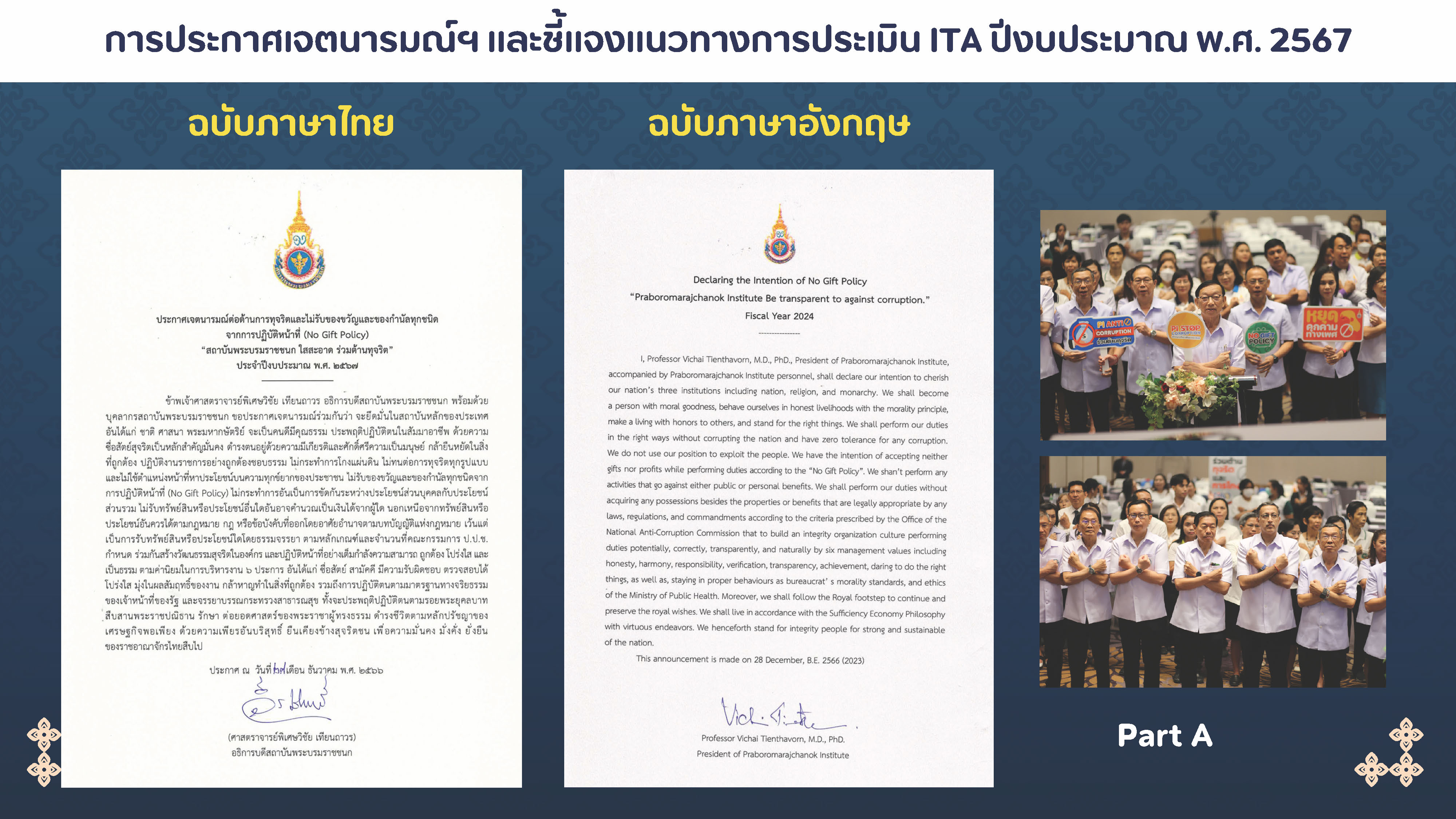 ประกาศเจตนารมณ์ฯ และชี้แจงแนวทางการประเมิน ITA ปีงบประมาณ พ.ศ. 2567