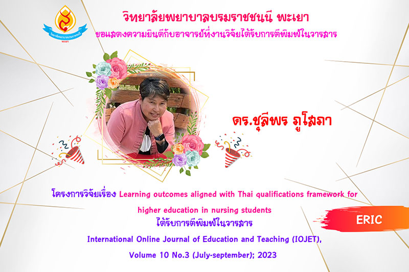 วิทยาลัยพยาบาลบรมราชชนนีพะเยา คณะพยาบาลศาสตร์ สถาบันพระบรมราชชนก ขอแสดงความยกย่องและยินดีกับอาจารย์ที่งานวิจัยได้รับการตีพิมพ์ในวารสารทั้งในและต่างประเทศ
