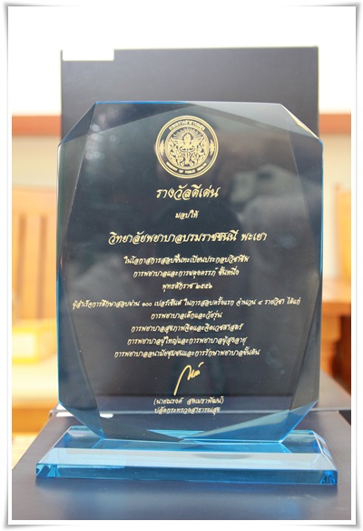 4.ประกาศเกียรติคุณ รางวัลวชิรปัญญา สาขาการส่งเสริมสุขภาพอนามัยสงฆ์ ประจำปีพุทธศักราช ๒๕๕๖ บุญนิธิจันทร์ตองไชยะวุฑฒิกุล มอบให้แก่กลุ่มงานวิจัย วิทยาลัยพยาบาลบรมราชชนนี พะเยา
