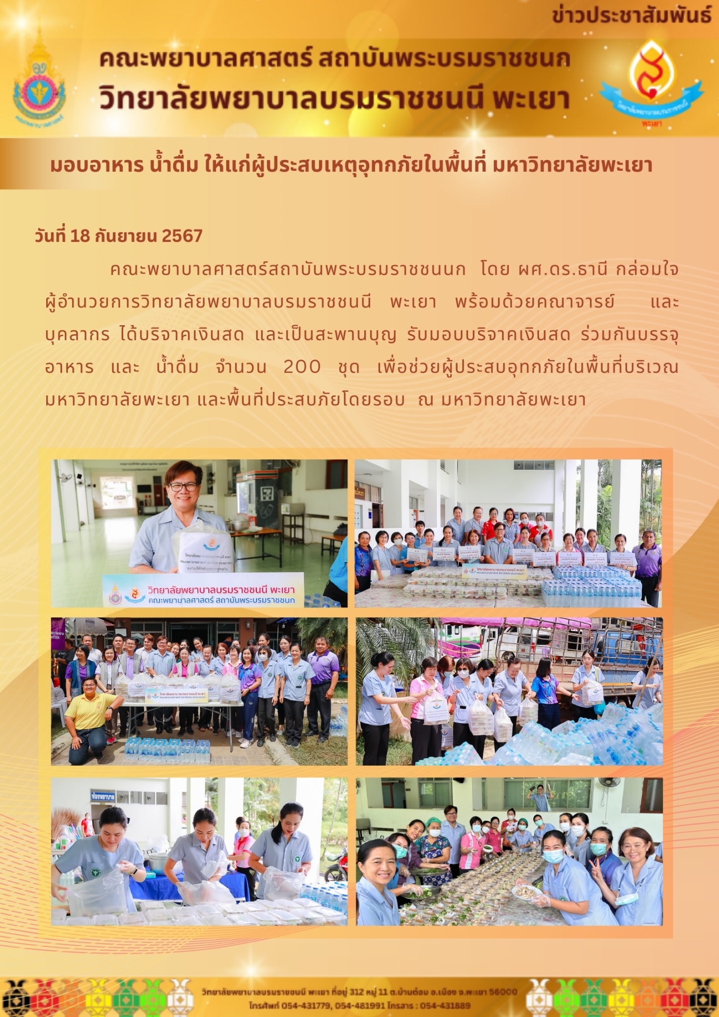 มอบอาหาร น้ำดื่ม ให้แก่ผู้ประสบเหตุอุทกภัยในพื้นที่ มหาวิทยาลัยพะเยา วันที่ 18 กันยายน 2567