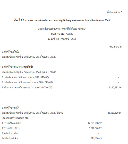 รายละเอียดประกอบรายการบัญชีที่สำคัญของงบทดลอง หน่วยงาน 2101700025